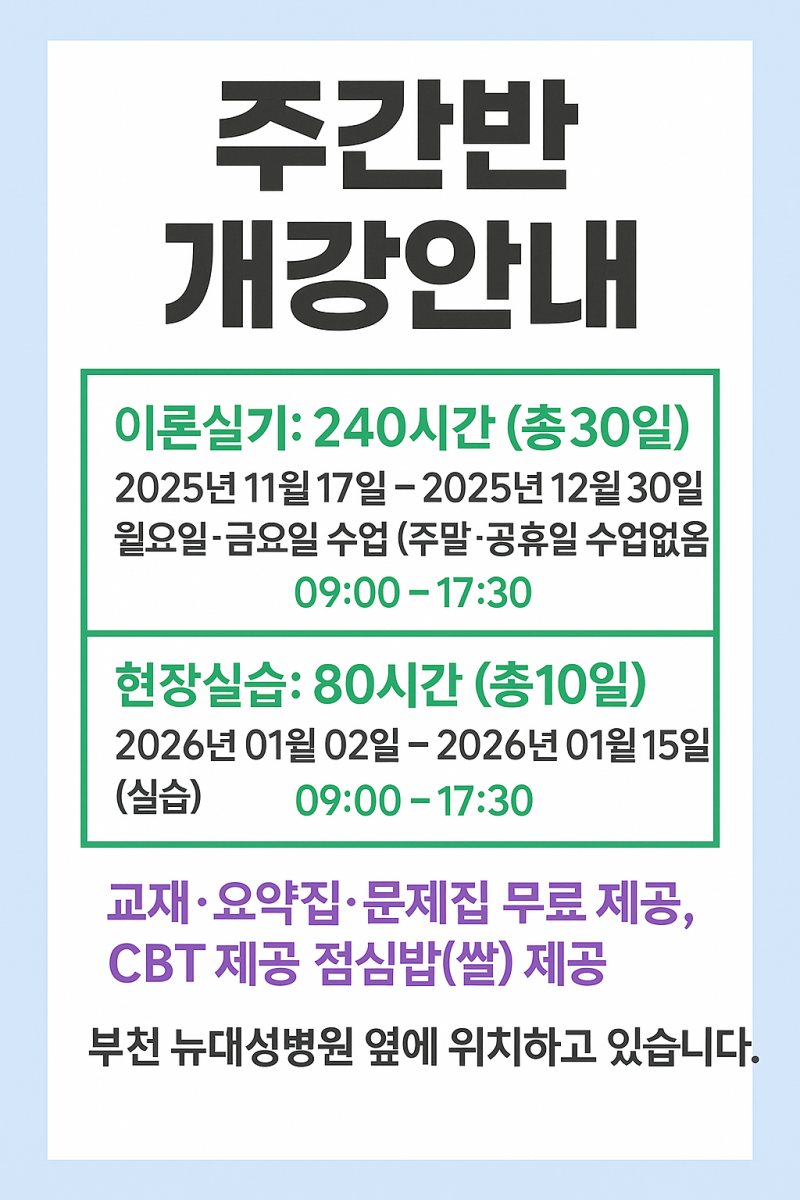 공지 | 165기 주간반 11월17일 개강안내