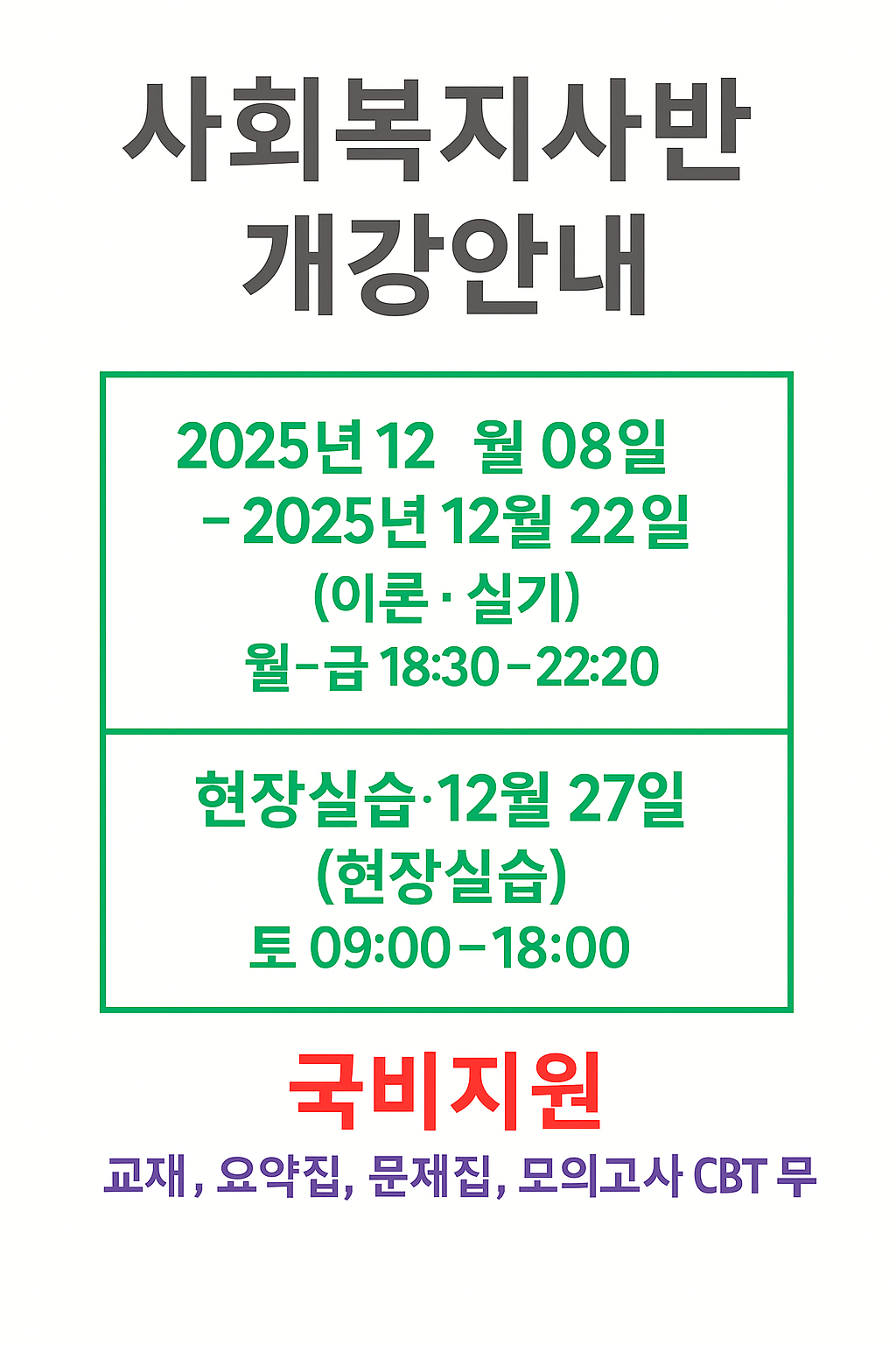 ▶이론+실기 :12/08~12/22(월~금)18:30~22:20
